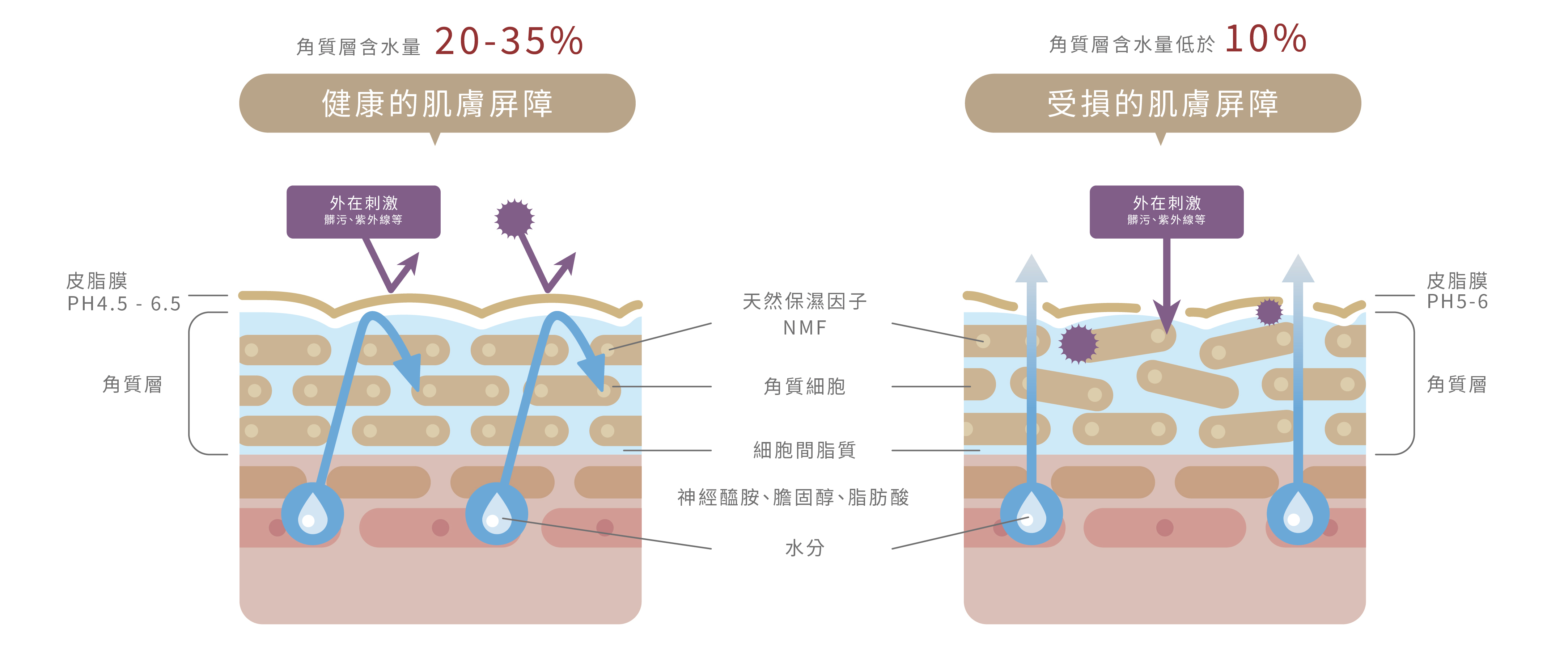 健康的肌膚屏障=完整的保濕=補水+補脂+鎖水